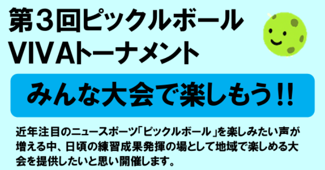 このたび、伏見北堀公園地域体育館にて、地域交流とスポーツを楽しむ場として「第3回ピックルボール VIVAトーナメント」を開催いたします!