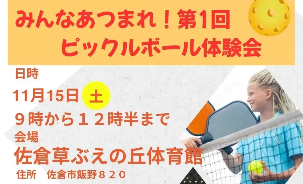 地域の子どもたちにスポーツの楽しさと交流の輪を広げるため、今年(2025年)は11月15日(土)に、佐倉市と千葉県ピックルボール協会の後援で、「みんなあつまれ!第1回ピックルボール体験会」を開催します!