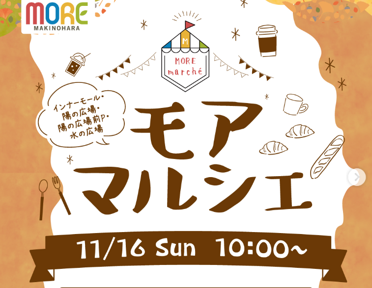 北総線の印西牧の原駅からも近いショッピングモール牧の原モアにて、2025年11月16日(日)に、「モアマルシェ」が開催されます。