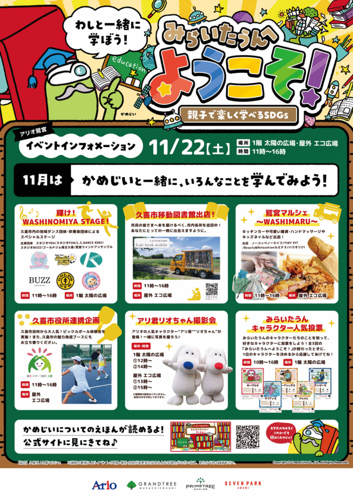 見る、遊ぶ、体験する、学ぶ、買う、食べる【11/22(土)】みらいたうんへようこそ!