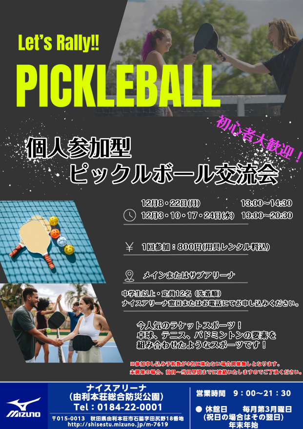 【対象】中学生以上 【定員】12名