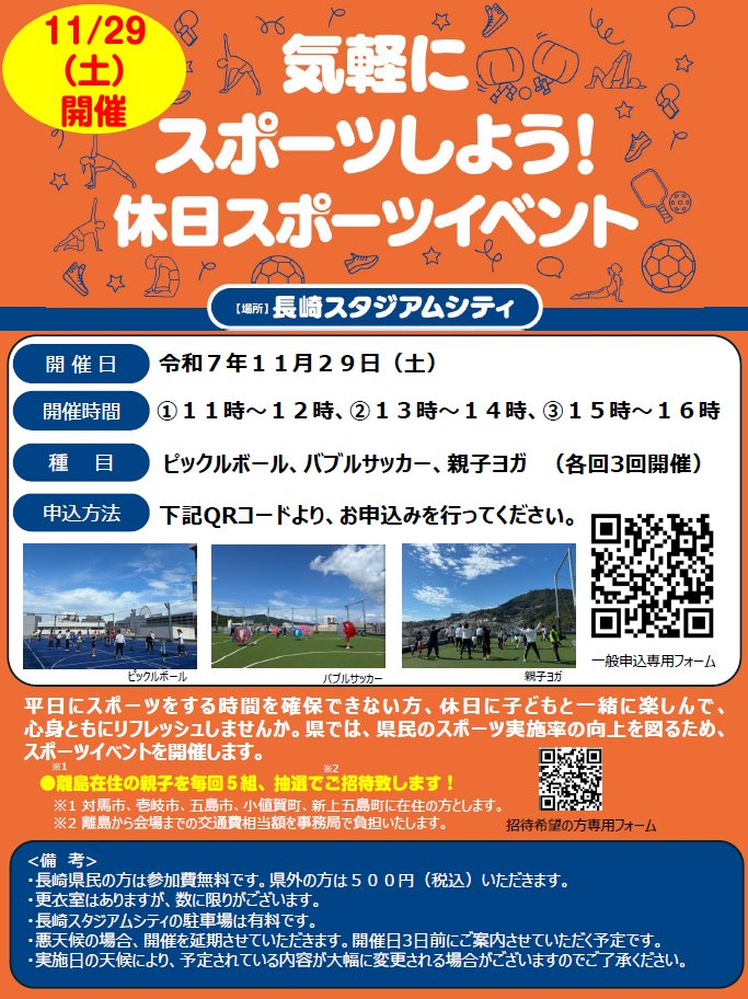 平日にスポーツをする時間を確保できない方、休日に子どもと一緒にスポーツを楽しみたい方、ぜひご参加ください!
