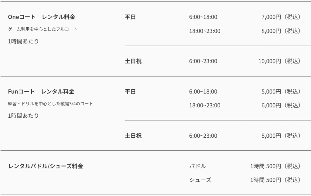 ※画像参照:PICKLEBALL ONE GINZA SHIMBASHI公式サイト
