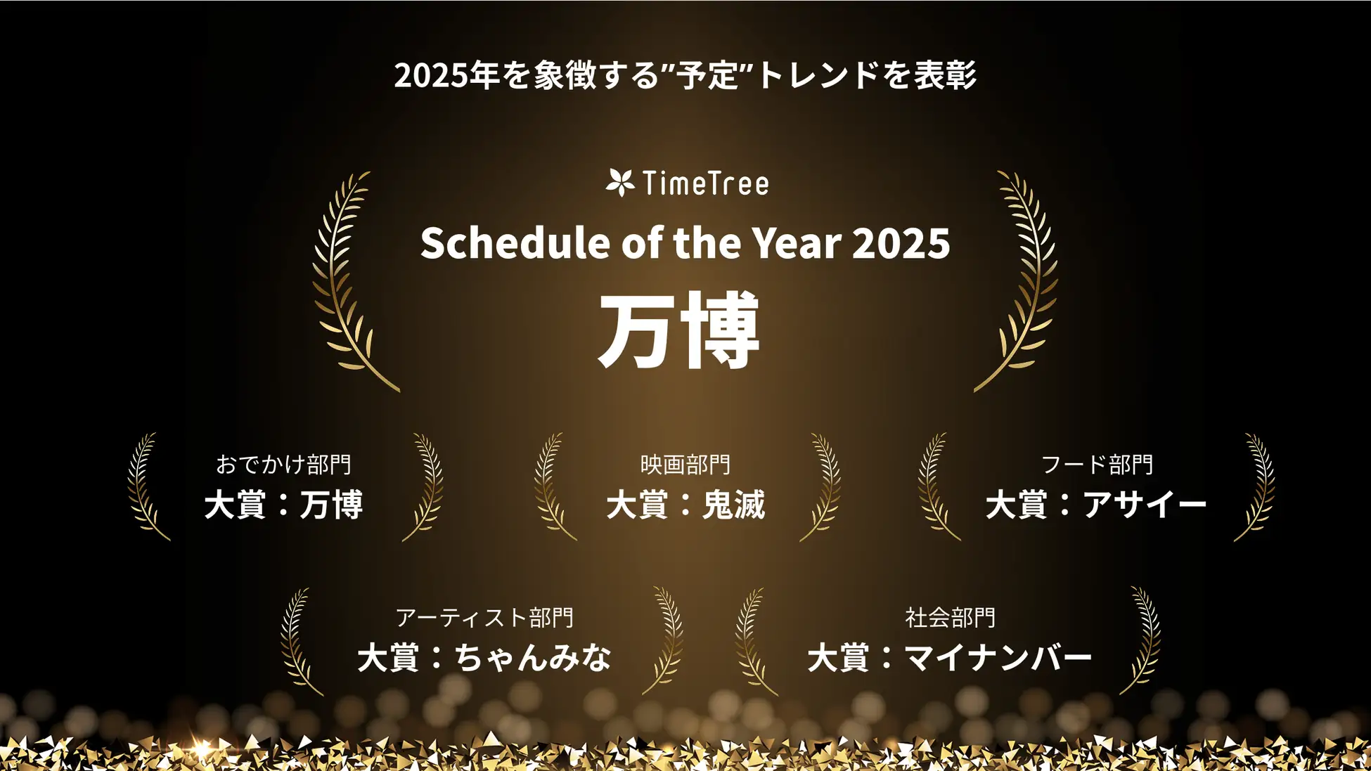 株式会社TimeTreeの社内研究所『TimeTree未来総合研究所』(https://timetreeapp.com/intl/ja/future-research-institute)は、「カレンダーの日」として知られる12月3日、国内累計3000万超のユーザーが「TimeTree」のカレンダーに登録したデータをもとに、2025年を象徴する“予定”トレンドを表彰するアワード「TimeTree Schedule of the Year 2025」を発表いたしました。