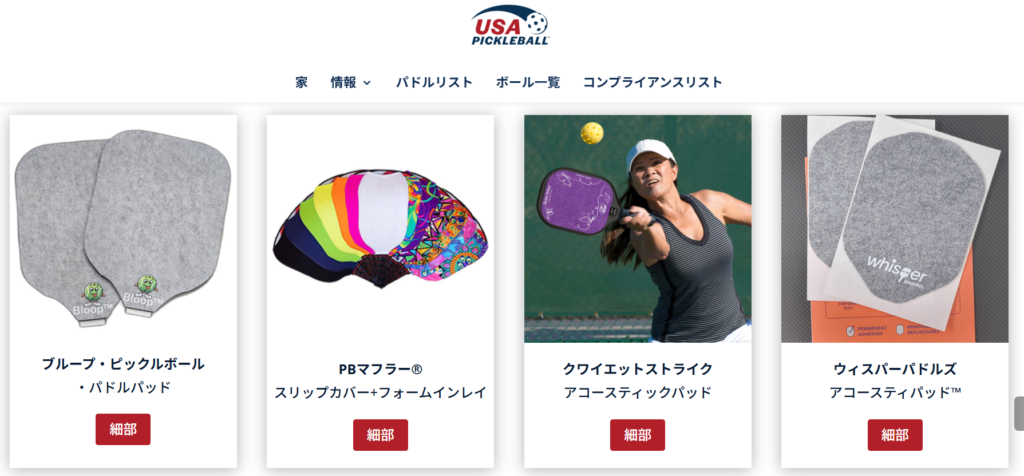 ※画像参照:USA Pickleball 静音カテゴリー一覧:パドルカバー/スリーブ/オーバーレイ