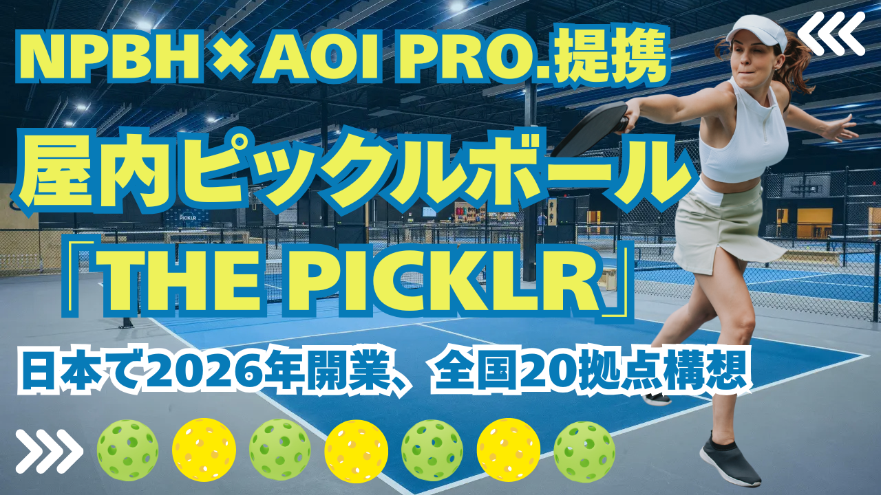 NPBHは、米国発の屋内施設ブランド「The Picklr」について、日本国内での施設運営と商品化に関するマスターフランチャイズ・ライセンスを取得した旨を発表しています。あわせて、日本で「The Picklr」公式コートを2026年に開業予定、さらに 全国20拠点に展開していく方針も示されています。