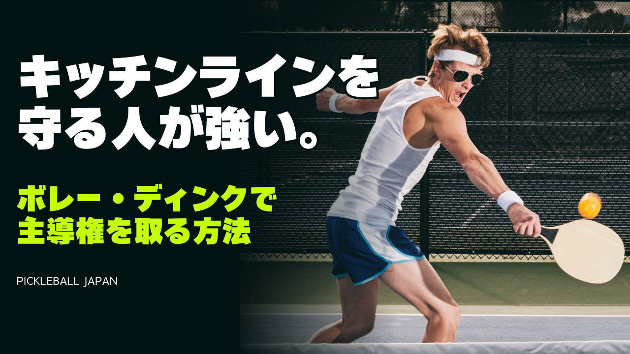 ピックルボールには、ネットの両側(約2.13m)のエリアに ノン・ボレーゾーン(通称:キッチン)があります。ここは名前の通り、中でボレー(ノーバウンドで打つこと)をすると反則です。しかも「ラインもキッチンの一部」なので、ラインを踏んだ状態でボレーもアウトになります。