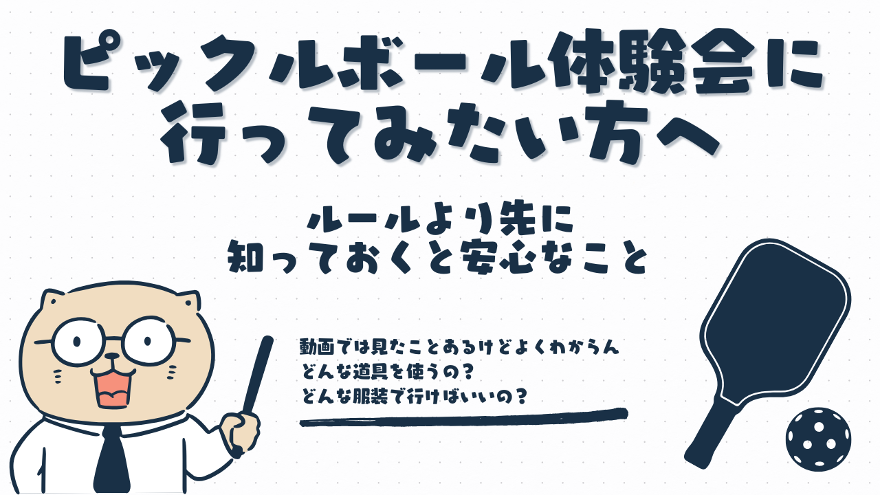 だからこそ最初は、どんな道具を使うのか、どんな服装で行けばいいのか、ボールやパドルって何なのか。そのあたりが分かっているだけでも、かなり参加しやすくなります。
